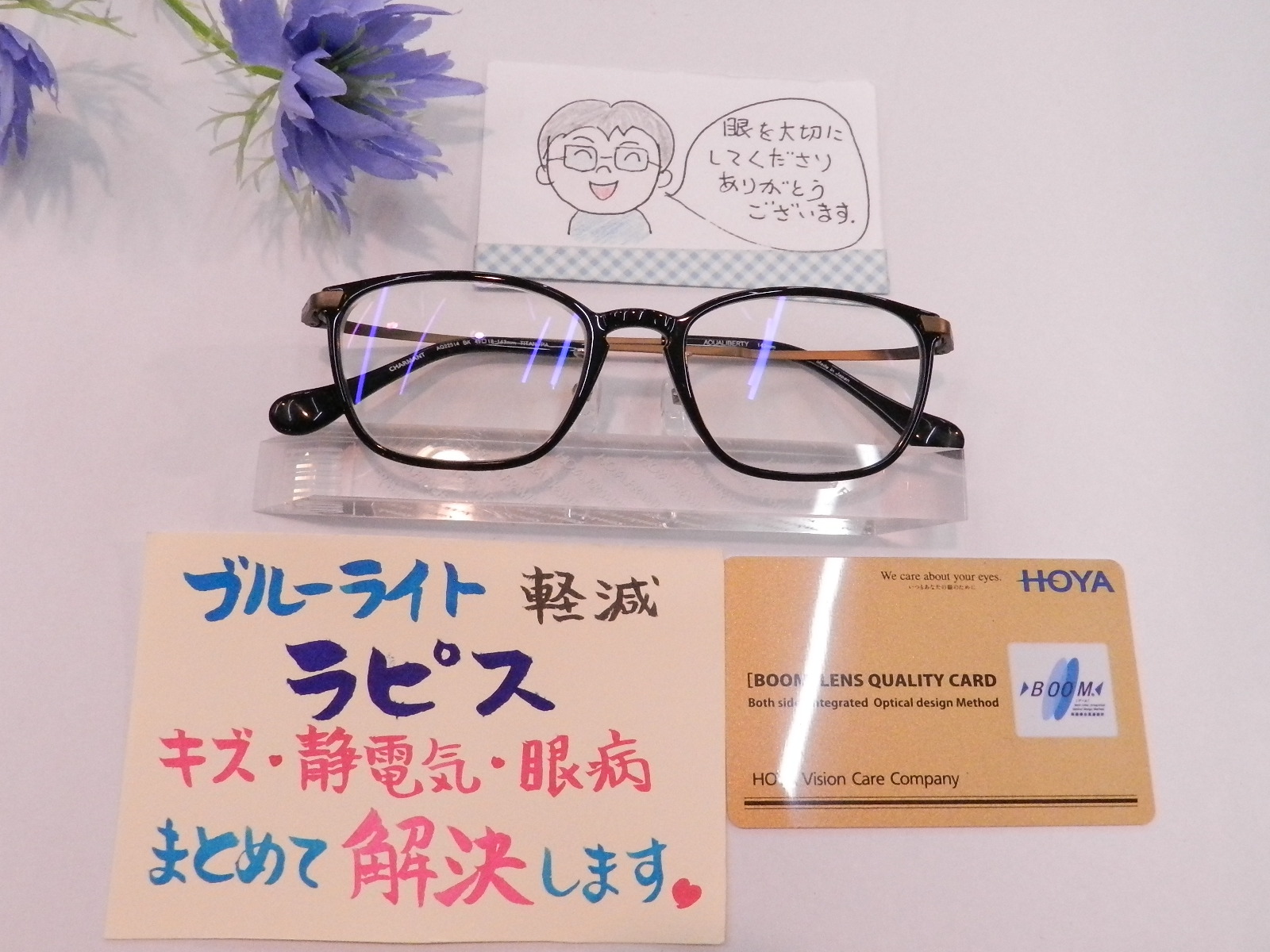 眼の健康を考えたブルーライト軽減コートラピスをお付けいただきました。