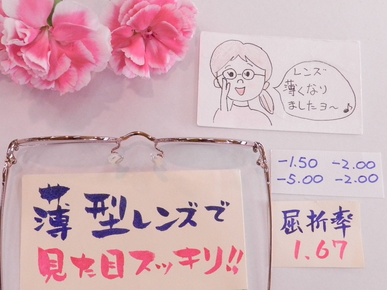 強い方のレンズを屈折率が高い1.67で対応させていただきました。(*^▽^*)