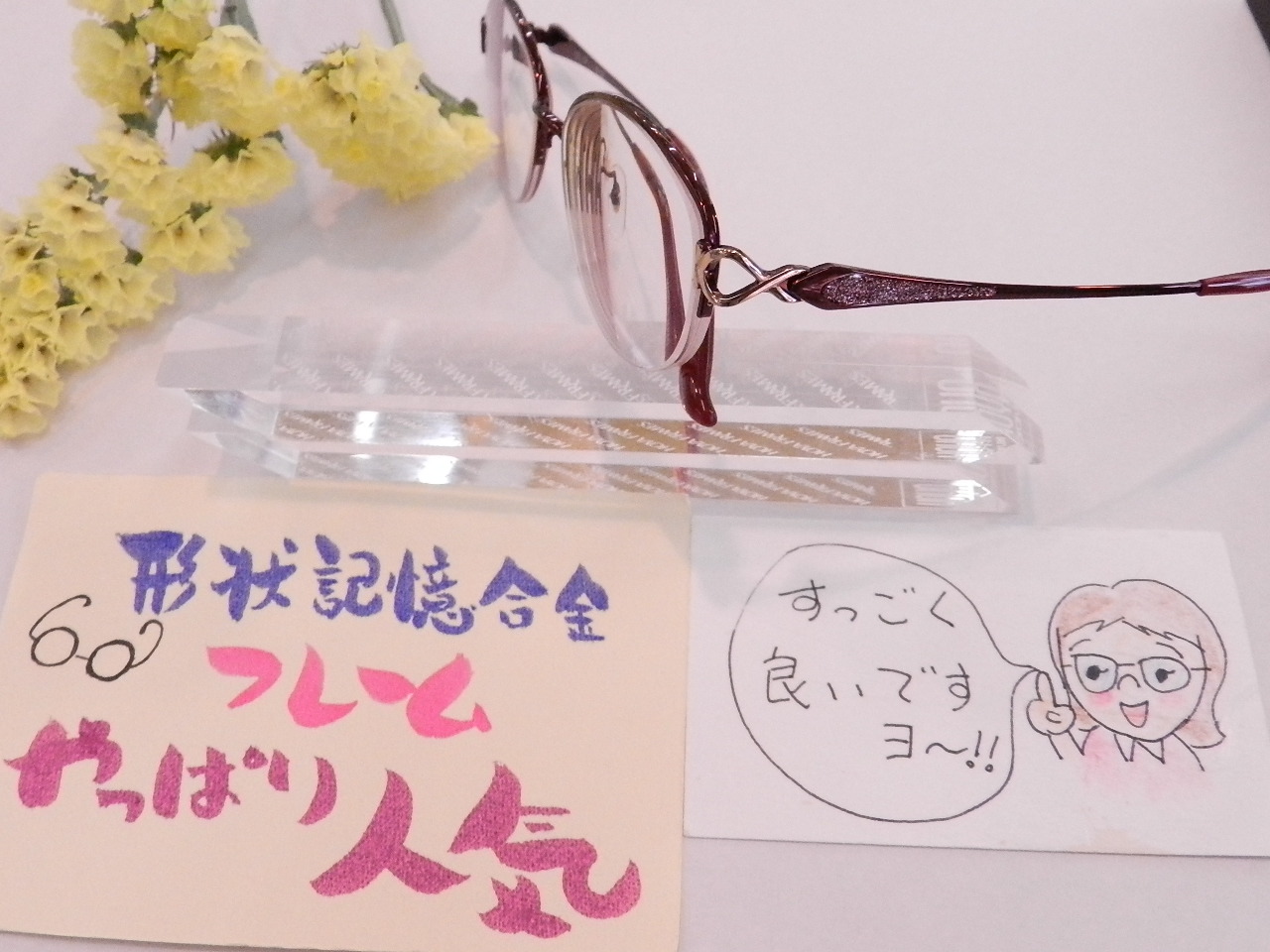 軽くて柔らかい形状記憶素材のフレームをお選びいただきました。