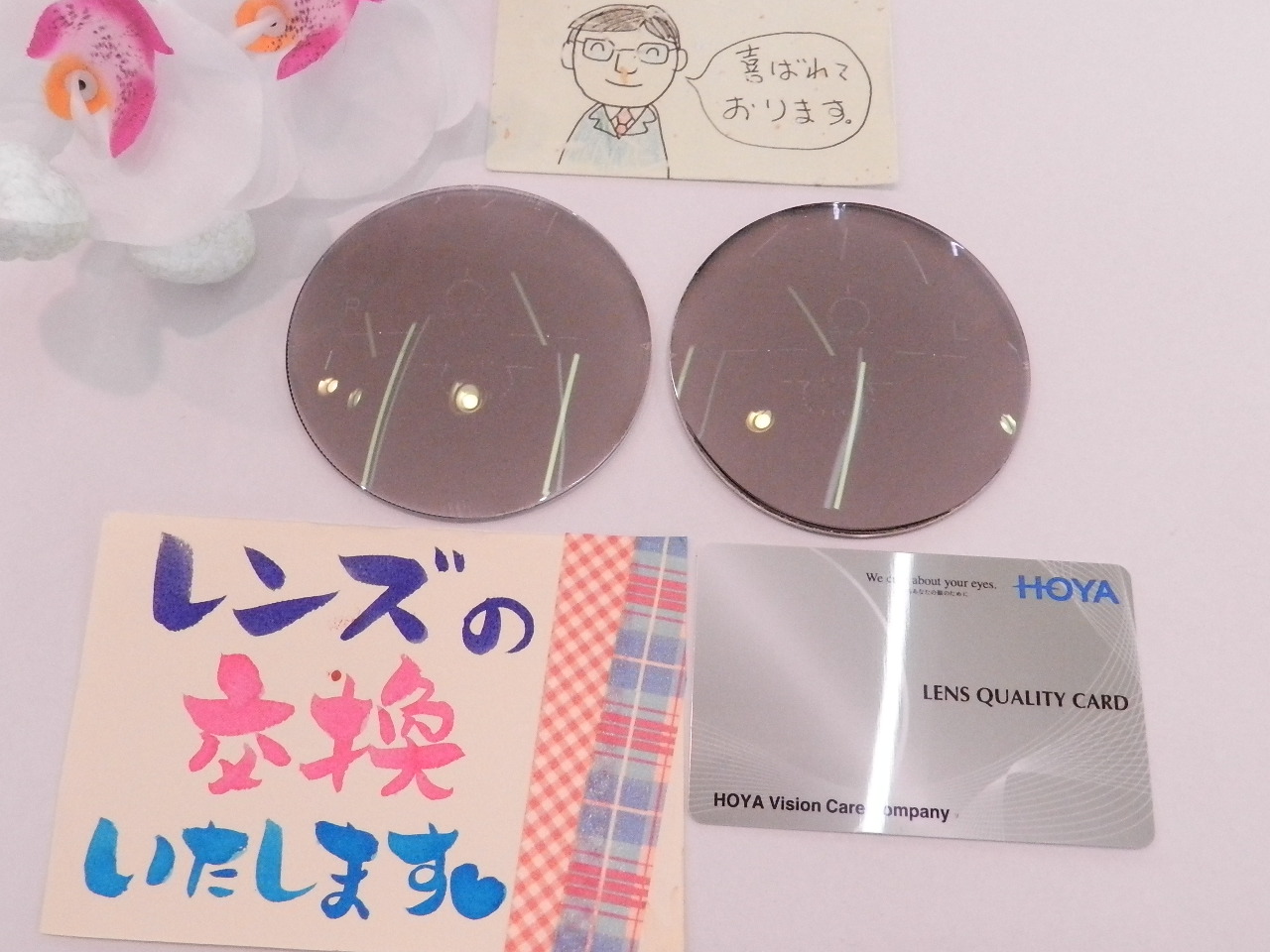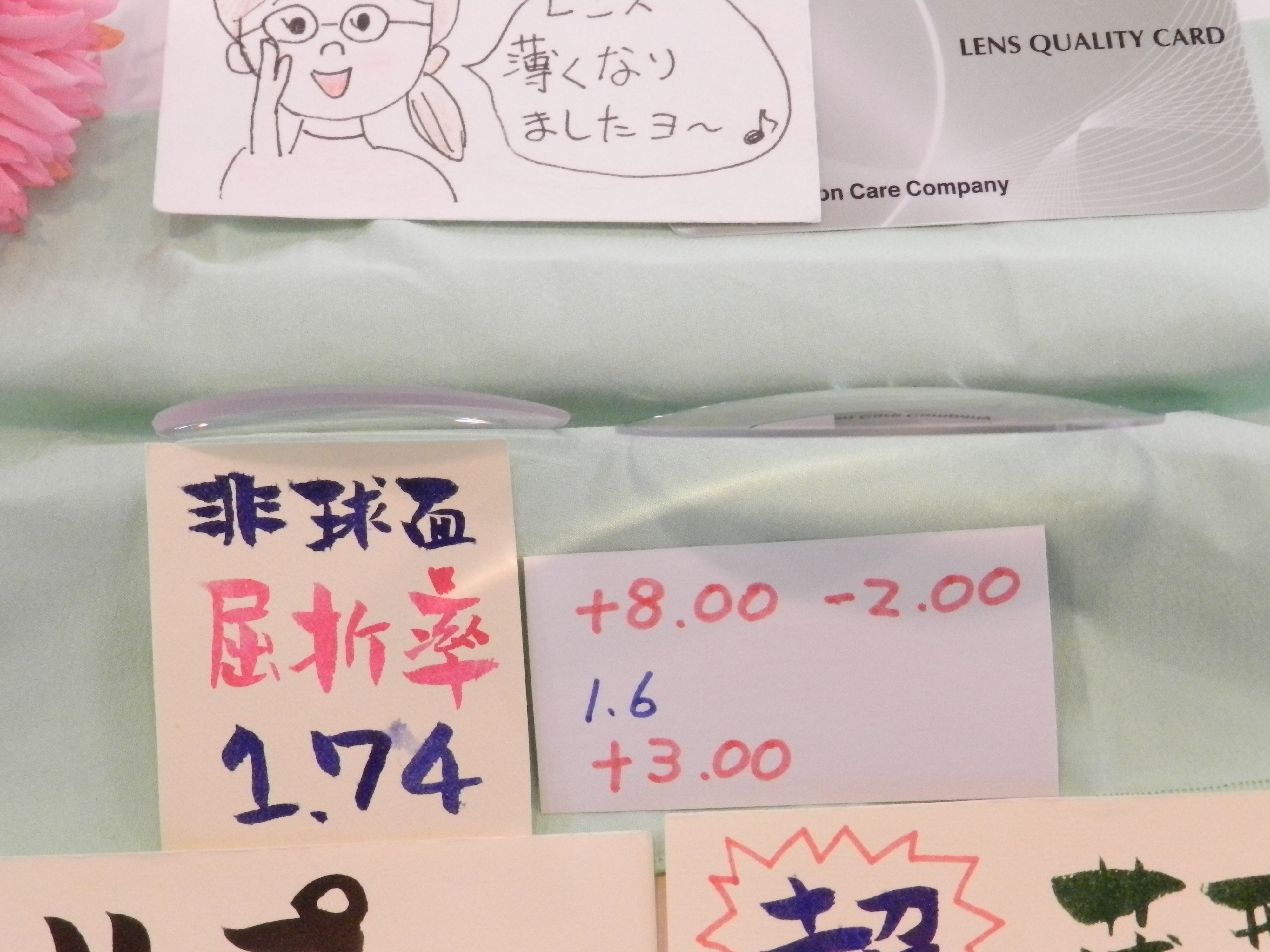 左目は右のレンズの厚さと均等になる+3度数を選びました。