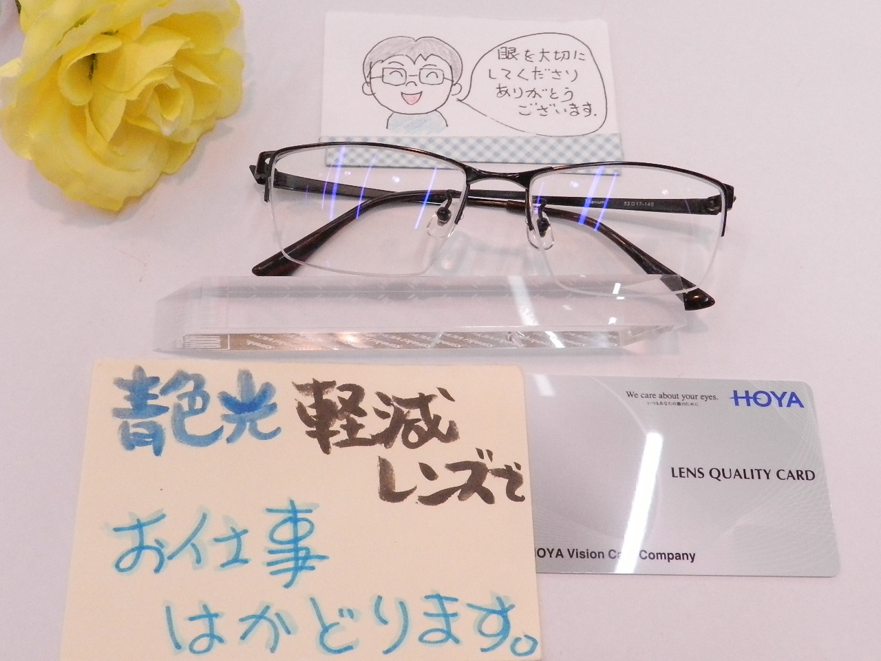 今回は眼の健康を考えたブルーライト軽減コートをお付けいただきました。