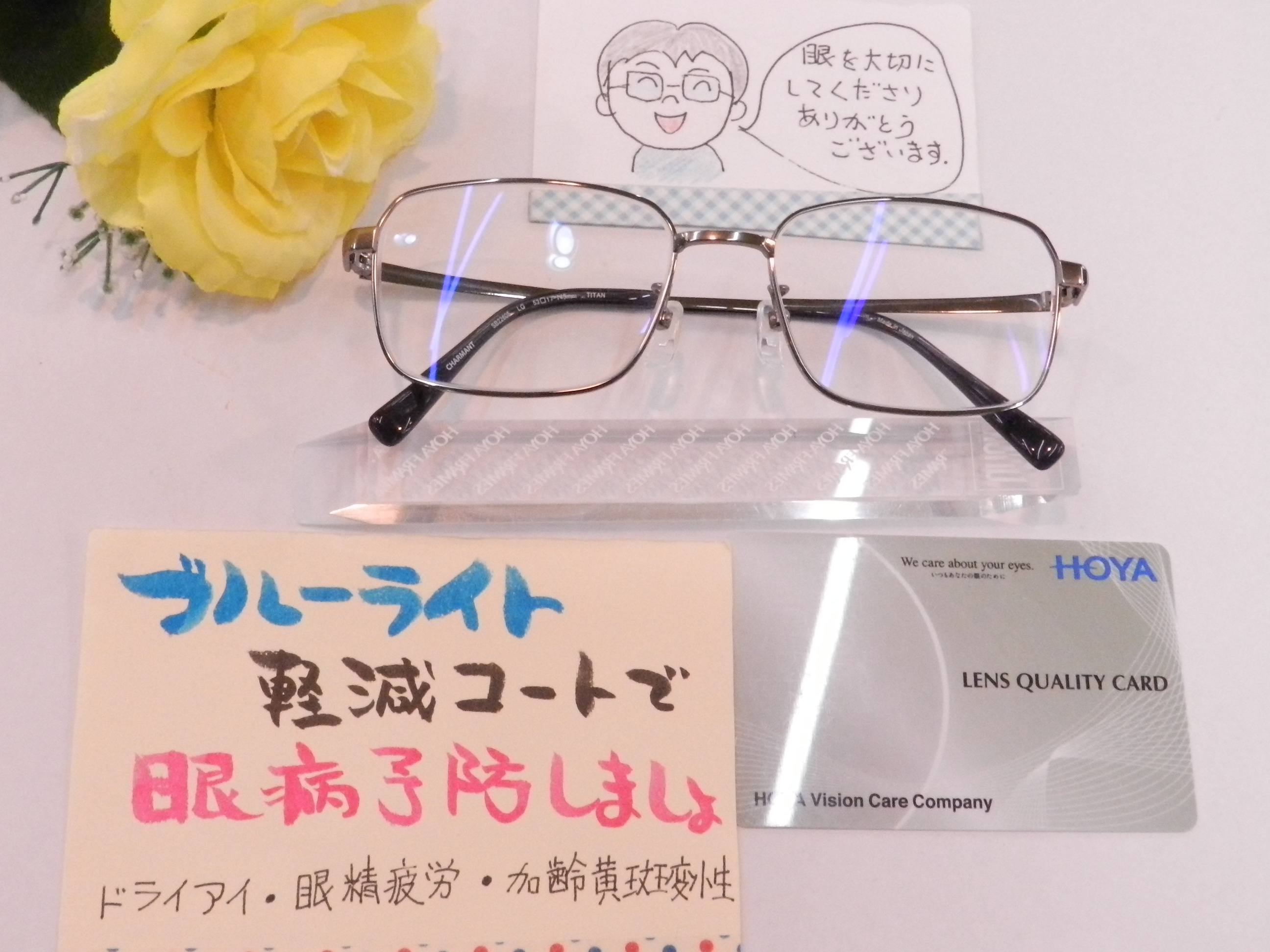 レンズにはブルーライト軽減のラピスコートを付けて頂きました。