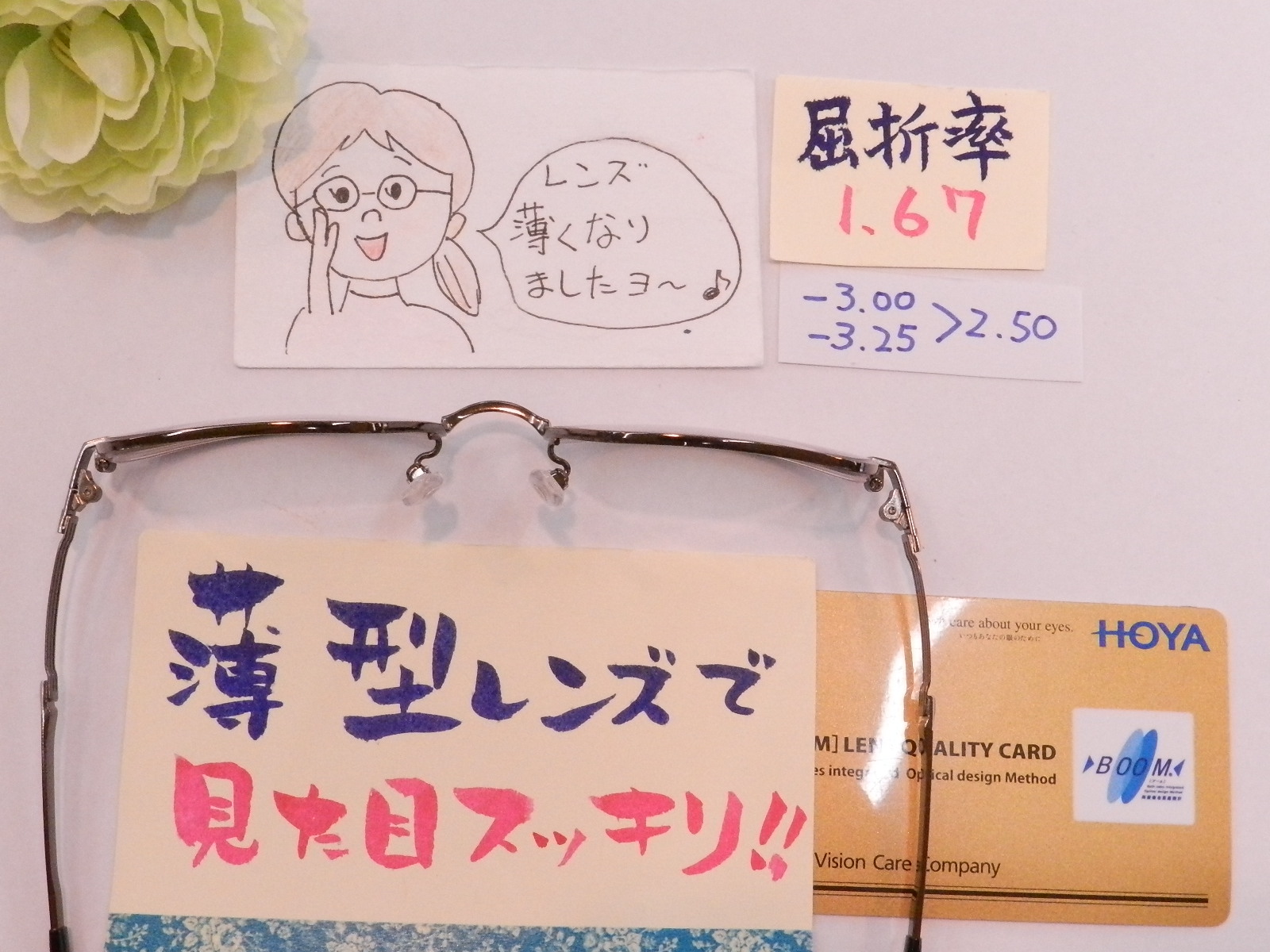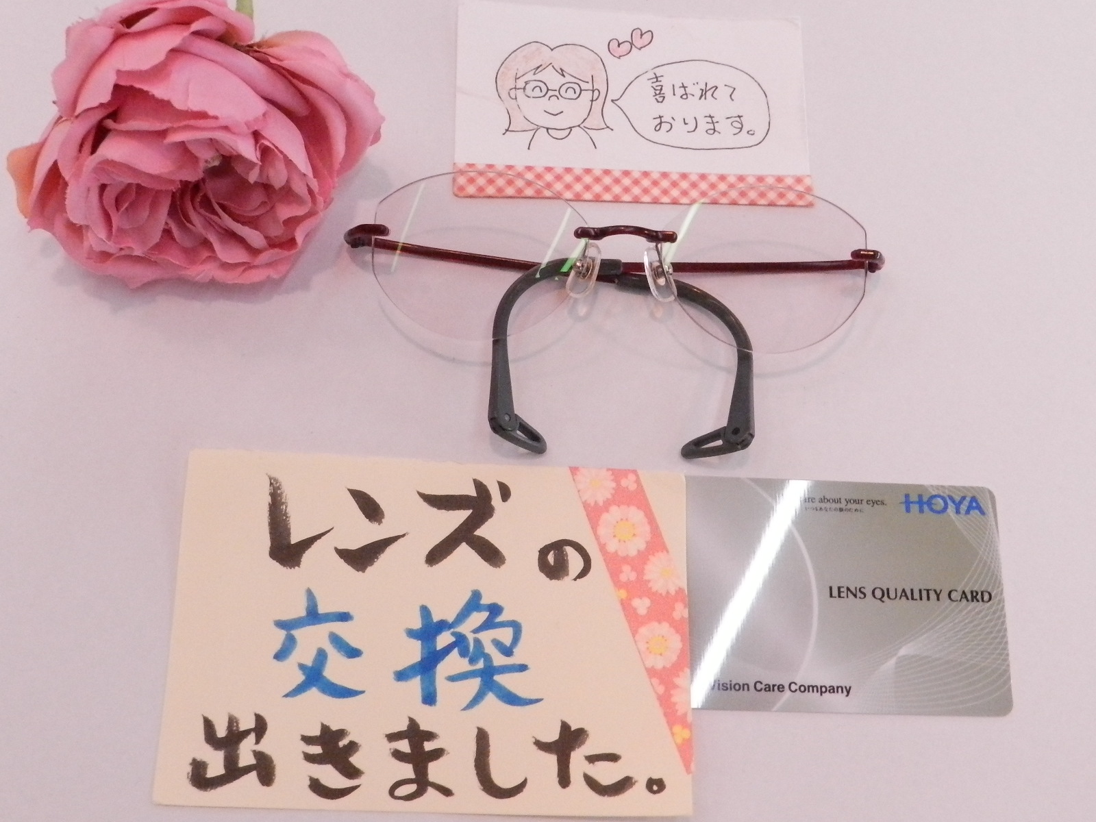 #HOYAレンズ #近用単焦点レンズ #枠なしメガネ #上山市 #メガネのエース上山店 #レンズの交換 #フレームの交換 #メガネの修理 #メガネの調整 #慣れやすい遠近両用[BOOM]ウエルナ #眼の健康を考えたブルーライト軽減コート・カラー #軽くて柔らかい掛け心地シャルマンラインアート取扱店 #子供用トマトグラッシー #紫外線で色付くサンテック調光レンズ #乱視矯正